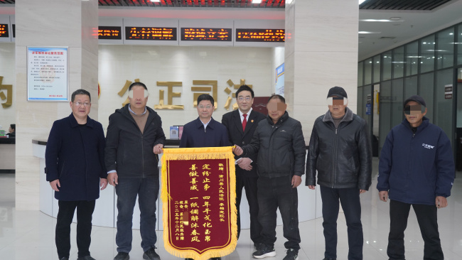 12月9日,潢川县人民法院迎来了一幕温馨场景。一起物权保护纠纷案件的原告陈某某与被告某村民组的群众代表,不再是对簿公堂的双方,而是共同将一面鲜红的锦旗交到了院党组书记、院长李柏定的手中。锦旗上“定纷止争,四年干戈化玉帛;善做善成,一纸调解沐春风”的金色大字,不仅道出了当事人的由衷感激,更是对潢川法院法官倾心调解、司法为民工作成效的生动写照。