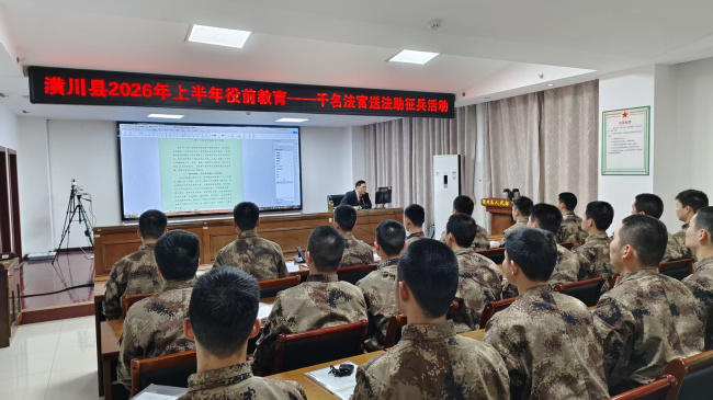 为切实维护国防利益和军人军属合法权益,助力新兵系好军旅生涯第一粒“法治扣子”,3月12日,潢川县人民法院民一庭庭长李智勇走进潢川县人民武装部,开展“送法助征兵”活动,为2026年上半年预定新兵送上了一堂生动实用的普法专题讲座。